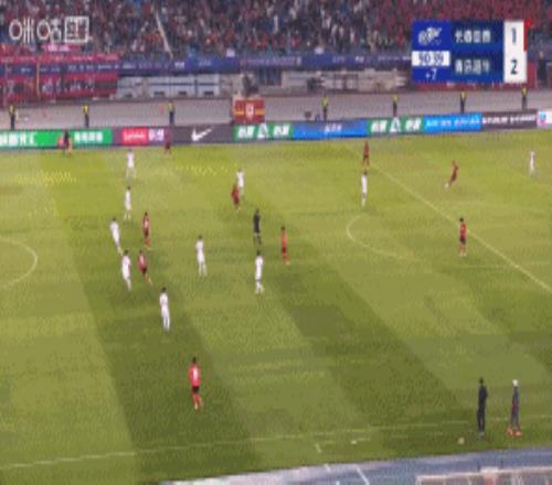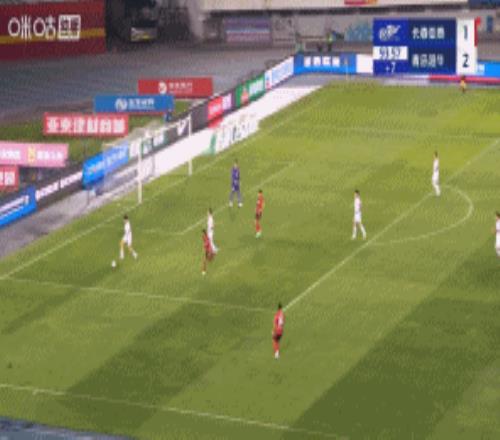 第90+2分钟,谭龙近距离打门得分,帮助亚泰队1-2扳回一球!