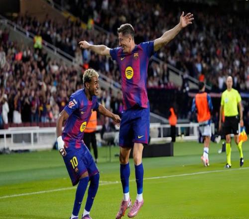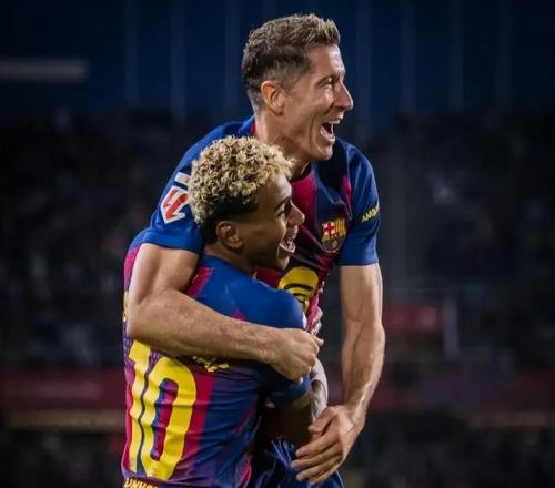 下半场回来不久弗里克立马换上刚刚伤愈的亚马尔;第59分钟,刚刚第二次触球的亚马尔便在右路成功突破下底传中,莱万抢点甩头攻门打在立柱反弹入网,2:1!连续2轮比赛,莱万都打进关键的反超进球。