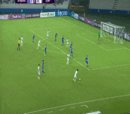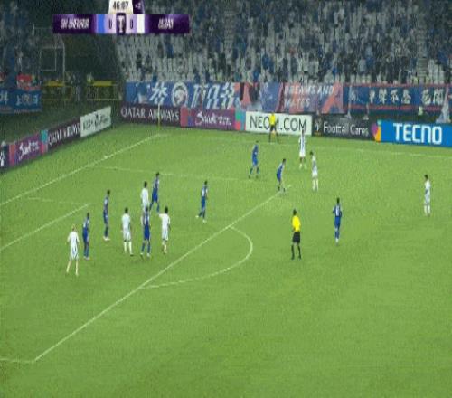 第48分钟,高天意横传经过折射制造混乱,阿苏埃禁区内凌空扫射破门,帮助申花1-0领先蔚山。