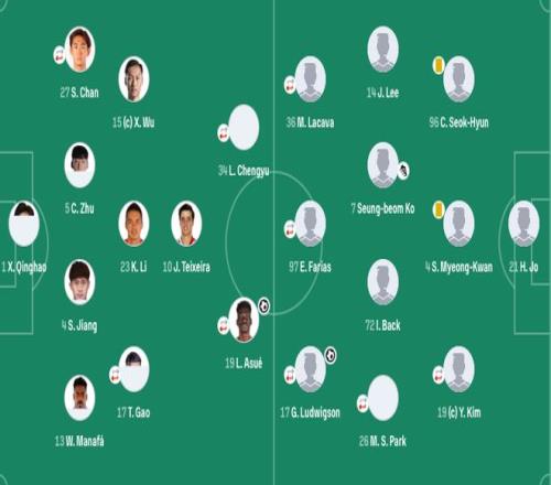 中场:26-朴悯叙(74'6-达里扬·博扬尼奇)、7-高丞范、14-李镇贤、96-崔锡铉