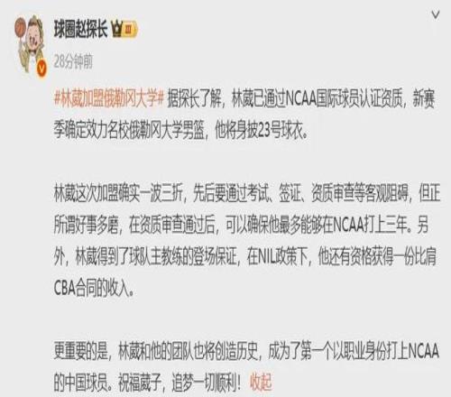 国内媒体人跟进报道称,林葳在俄勒冈大学继续身披23号球衣,得到了主教练的上场保证,并且在NIL政策下有资格获得一份比肩CBA合同的收入,就此成为首位以职业球员身份打进NCAA的中国球员。