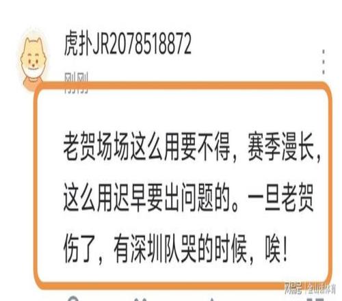 全场打满40分,如此超负荷运转,也让球迷们心疼不已。“把贺希宁当牛一样使啊?打满40分钟。”;“生产队的驴都不带这么用的”;“牛都不敢这样用啊。真牛逼”;“老贺每场都这么用要不得,赛季漫长,这么用迟早要出问题的。一旦老贺伤了,有深圳队哭的时候,唉!”……